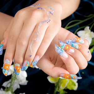Nail art in 2025 is all about creativity, texture, and personalization. Trending designs include 3D embellishments, aura and chrome finishes, magnetic cat-eye effects, and minimalist negative space styles. Textured nails like velvet or sugar finishes, jelly nails, and real floral encapsulations are also in vogue. Mix-and-match manicures and AI-generated or NFC-enabled smart nail art are pushing boundaries. Popular color palettes range from soft metallics and earthy tones to vibrant digital brights and sheer neutrals, suiting every mood and occasion.